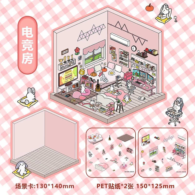 Miniature scene landscaping stickers 3D three-dimensional house upgrade DIY decorative handbook stickers